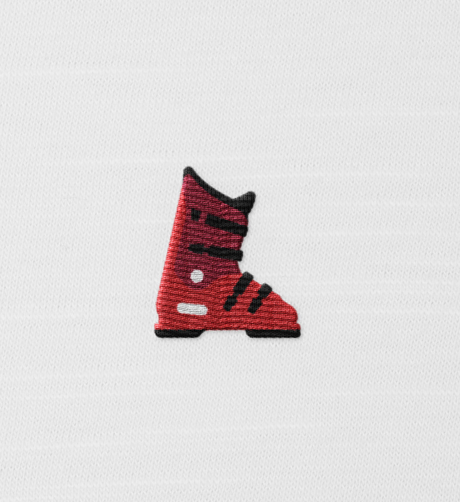 Was wäre Skifahren ohne Skischuhe? Ein Symbol für Abenteuer auf der Piste und unvergessliche Wintertage. Ein kleines Stick-Motiv, das sofort die Vorfreude auf den nächsten Skiurlaub weckt.
