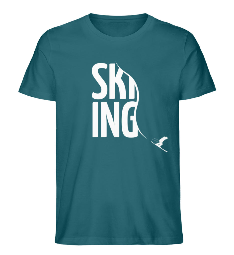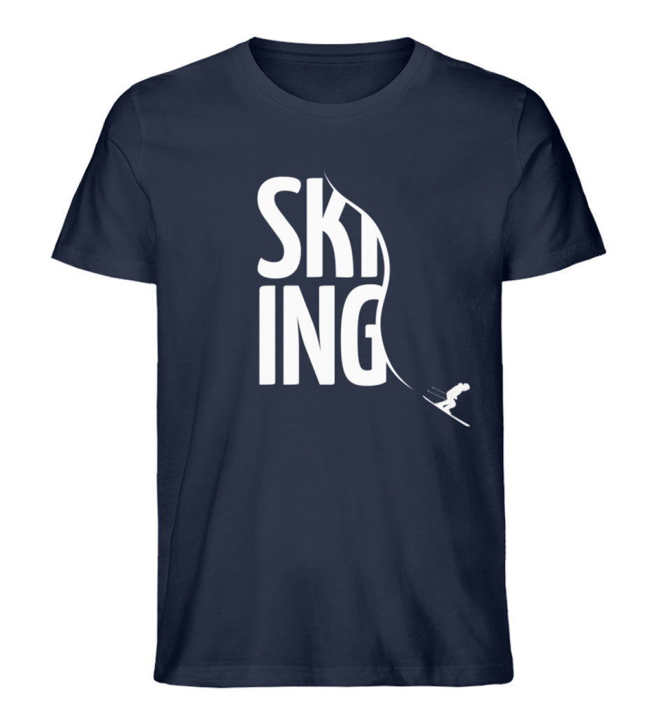 SKIING - ein Must-Have T-Shirt für alle Skifahrer auf dem Berg. Skifahrer schneidet Schriftzug. Trage den Winter an dir. Unsere ANKERLIFT Produkte sind das perfekte Geschenk für Skifahrer und Snowboarder.